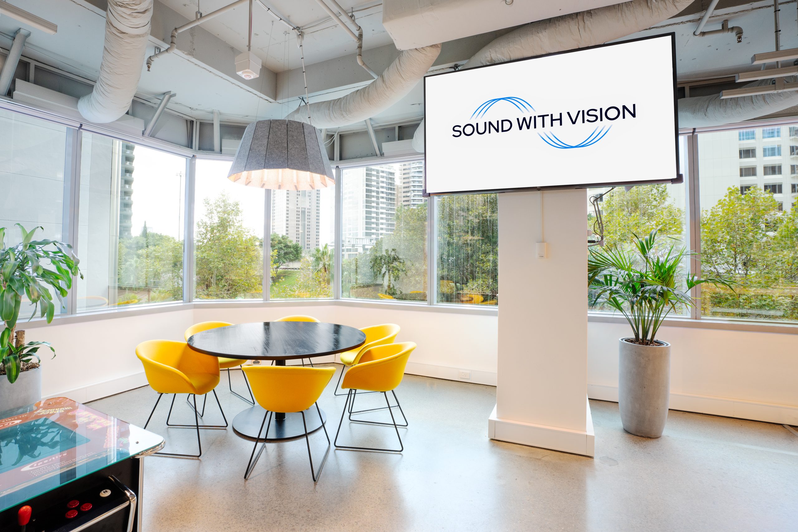 Sound with Vision integrated the new office fit out with the latest in video conferencing equipment bringing their office back to the cutting edge of technology. Some of the technology used included commercial LG displays, DTEN Touch Screen Collaboration displays, Logitech Video Conferencing Cameras and audio equipment and Vogels mounting brackets.